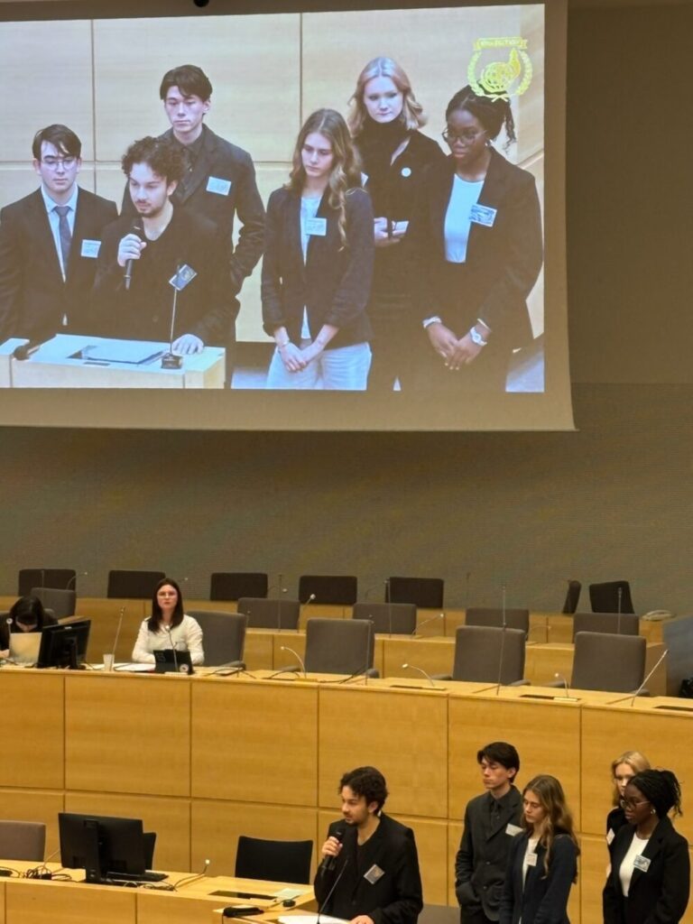 Sur le jour 3, la matinée et le début d’après midi a été consacrés à une ultime opération de lobbying afin de proposer des solutions : sont représentés par nos élèves du lycée la Somalie, l’Italie, l’Israël, le Vietnam, le Brésil, la France … le milieu de l’après midi était consacré aux débats politiques en plénière dans l’hémicycle avant la traditionnelle cérémonie de clôture. Bravo les jeunes !